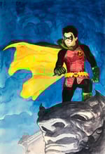 A3 (11.7 x 16.5 inches) painted commission, single character. Painted using watercolours, gouache, and inks on heavyweight watercolour paper. Once purchased, use the email link in my profile to tell me which character you want, along with any other info, and leave the rest to me. Includes print of digital sketch. Allow up to 6 months for delivery.