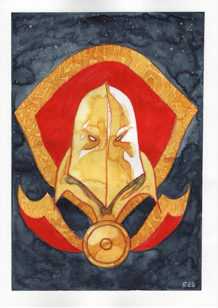 A4 watercolour painting of Amalgam Comics’ Dr Strangefate on heavy watercolour paper.