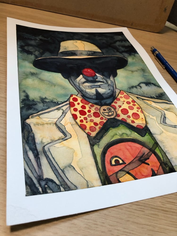 A4 watercolour painting of Jack Point (2000AD) on heavy watercolour paper.