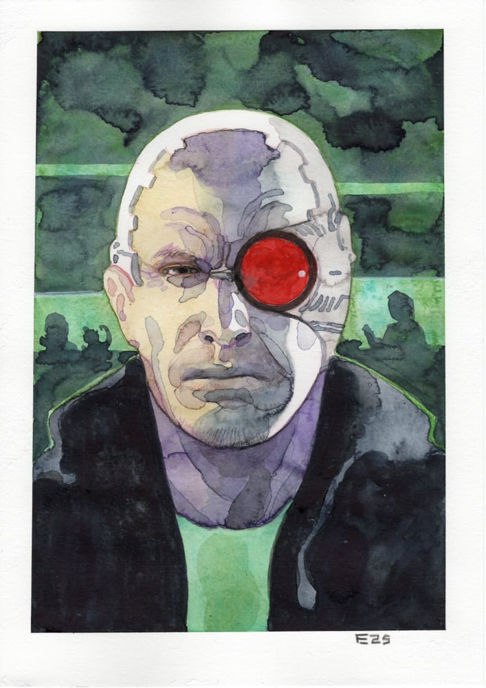 A4 watercolour painting of John Charles’ Technofreak on heavy watercolour paper.