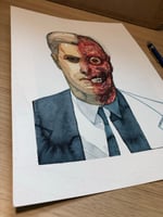 A4 watercolour painting of Two-Face on heavy watercolour paper.